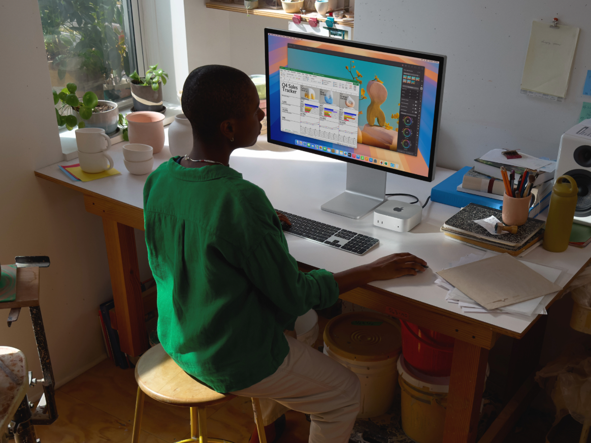 Atrás: três portas Thunderbolt 4, porta HDMI, porta Ethernet Gigabit