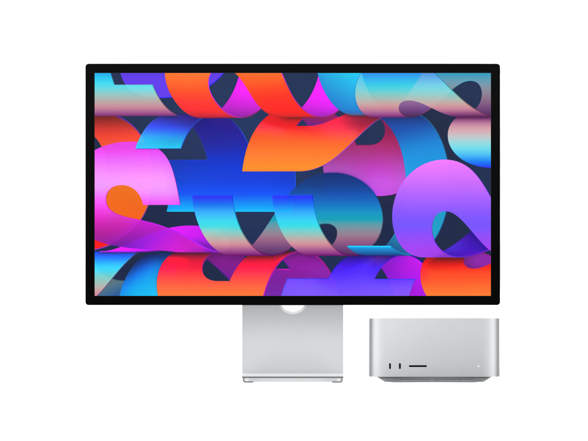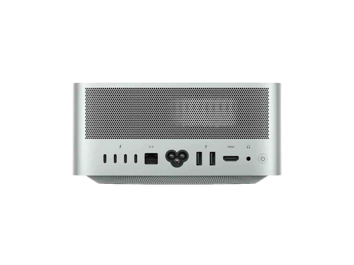 Atrás: quatro portas Thunderbolt 5, duas portas USB‑A, porta HDMI, porta Ethernet de 10 Gb, saída para auscultadores